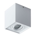 Накладной светильник стиля техно для гостиной, кабинета, кладовой,коридора, прихожей или спальни,туалета имеет размеры 90x90x95 мм. Арматура светильника окрашена в белый цвет. Лампы в комплекте - отсутствуют. В светильнике применяются галогеновая лампа или светодиодная LED-лампа. Цвет плафонов - белый, с матовой поверхностью. Материал плафонов - дюралюминий. Класс электробезопасности - I, степень пылевлагозащиты (IP) - IP44. Максимальная мощность лампы (Вт) - 35. Светильник размещается на потолоке и стене.