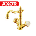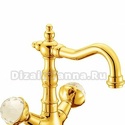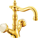 Назначение: для умывальника • Конструкция: двухрычажный • Монтаж: горизонтальный • Материал: латунь, покрытие - золото • Монтажные отверстия: 1 отверстие • Форма излива: традиционная • Душевая лейка в комплекте: нет • Донный клапан в комплекте: есть
