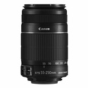 Тип: телеобъектив zoom • Фокусное расстояние: 55 - 250 мм • Максимальная диафрагма: F/4.0-5.6 • Фокусировка: автоматическая • Крепление объектива (байонет): Canon EF-S • Фокусное расстояние (35 мм): 88 - 400 мм • Светосила: F/22 - f/32 • Кратность увеличения: 4.55x • Оптический стабилизатор: есть • Настройка зума: ручная • Минимальная дальность фокусировки: 110 см • Угол обзора: 6.3° - 27.8°