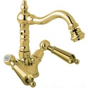 Назначение: для биде • Конструкция: двухрычажный • Монтаж: горизонтальный • Материал: латунь, покрытие - золото • Монтажные отверстия: 1 отверстие • Форма излива: традиционная • Душевая лейка в комплекте: нет • Аэратор: есть • Донный клапан в комплекте: есть