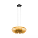 Подвесной светильник стиля модерн для гостиной, кабинета, прихожей или спальни имеет размеры 500x1500 мм. Арматура светильника окрашена в черный цвет. Лампы в комплекте - отсутствуют. В светильнике применяются светодиодная LED-лампа. Цвет плафонов - золотистый, с матовой поверхностью. Материал плафонов - стекло. Класс электробезопасности - I, степень пылевлагозащиты (IP) - 20. Максимальная мощность лампы (Вт) - 20. Светильник размещается на потолоке.