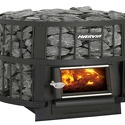 Пристенная банная печь, отапливаемый объем 13 куб.м, мощность 16 кВт, закрытого типа, древесное топливо
