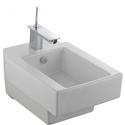 Биде, пристенная конструкция, подвесная установка , из санфарфора, горизонтальный выпуск