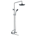 Устройство: душевая система • Смеситель: двухвентильный • Верхний душ (тропический): размер 200 мм, настройки 1 шт • Комплектация: ручной душ, верхний душ, смеситель, стойка, шланг, крепление ручного душа