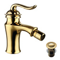 Назначение: для биде • Конструкция: однорычажный • Монтаж: горизонтальный • Материал: покрытие - золото • Подводка: гибкая • Монтажные отверстия: 1 отверстие • Форма излива: традиционная • Душевая лейка в комплекте: нет • Аэратор: есть • Донный клапан в комплекте: есть