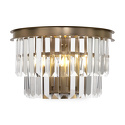 Накладной светильник стиля модерн для гостиной, кабинета, коридора, прихожей или спальни имеет размеры 165х245х330 мм. Арматура светильника окрашена в латунный цвет. Лампы в комплекте - отсутствуют. В светильнике применяются лампы накаливания или светодиодная LED-лампа. Цвет плафонов - неокрашенный, с прозрачной поверхностью. Материал плафонов - стекло. Класс электробезопасности - I, степень пылевлагозащиты (IP) - 20. Максимальная мощность лампы (Вт) - 40. Светильник размещается на стене.