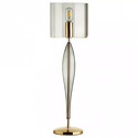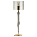 Настольная лампа декоративная стиля модерн для гостиной, кабинета или спальни имеет размеры 230x740 мм. Арматура светильника окрашена в золотой цвет. Лампы в комплекте - отсутствуют. В светильнике применяются лампы накаливания или светодиодная LED-лампа. Цвет плафонов - дымчатый, с матовой поверхностью. Материал плафонов - стекло. Класс электробезопасности - II, степень пылевлагозащиты (IP) - 20. Максимальная мощность лампы (Вт) - 60. Светильник размещается на столе.