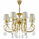 Подвесная люстра стиля флора для гостиной, кабинета или спальни имеет размеры 740x1730 мм. Арматура светильника окрашена в золотой цвет. Лампы в комплекте - отсутствуют. В светильнике применяются лампы накаливания или светодиодная LED-лампа. Цвет плафонов - кремовый, неокрашенный, с матовой, прозрачной, рельефной поверхностью. Материал плафонов - текстиль, хрусталь. Класс электробезопасности - I, степень пылевлагозащиты (IP) - 20. Максимальная мощность лампы (Вт) - 40. Светильник размещается на потолоке.