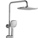 Устройство: душевая система • Смеситель: джойстик • Ручной душ (душевая лейка): размер 110 мм, настройки 1 шт • Верхний душ (тропический): размер 230 мм, настройки 1 шт • Комплектация: ручной душ, верхний душ, смеситель, стойка, шланг, крепление ручного душа, полка
