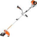 Двигатель: бензиновый, тип триммера: переносной, Мощность ДВС: 1.80 л.с., количество тактов двигателя: двухтактный, режущий элемент триммера: леска и нож, ширина скашивания: 44 см, конструкция штанги: прямая, плечевой ремень, количество колес: нет