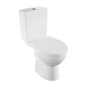 Тип: унитаз-компакт, напольный • Чаша: воронкообразная, полукруглая • Слив: горизонтальный • Подвод: нижний • Материал: санфарфор