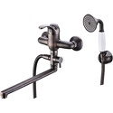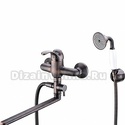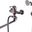 Назначение: универсальный • Конструкция: однорычажный • Монтаж: вертикальный • Клапан: керамический • Материал: латунь, покрытие - бронза • Подводка: жесткая • Монтажные отверстия: 2 отверстия • Душевая лейка в комплекте: есть • Держатель для душевой лейки: настенный держатель • Аэратор: есть